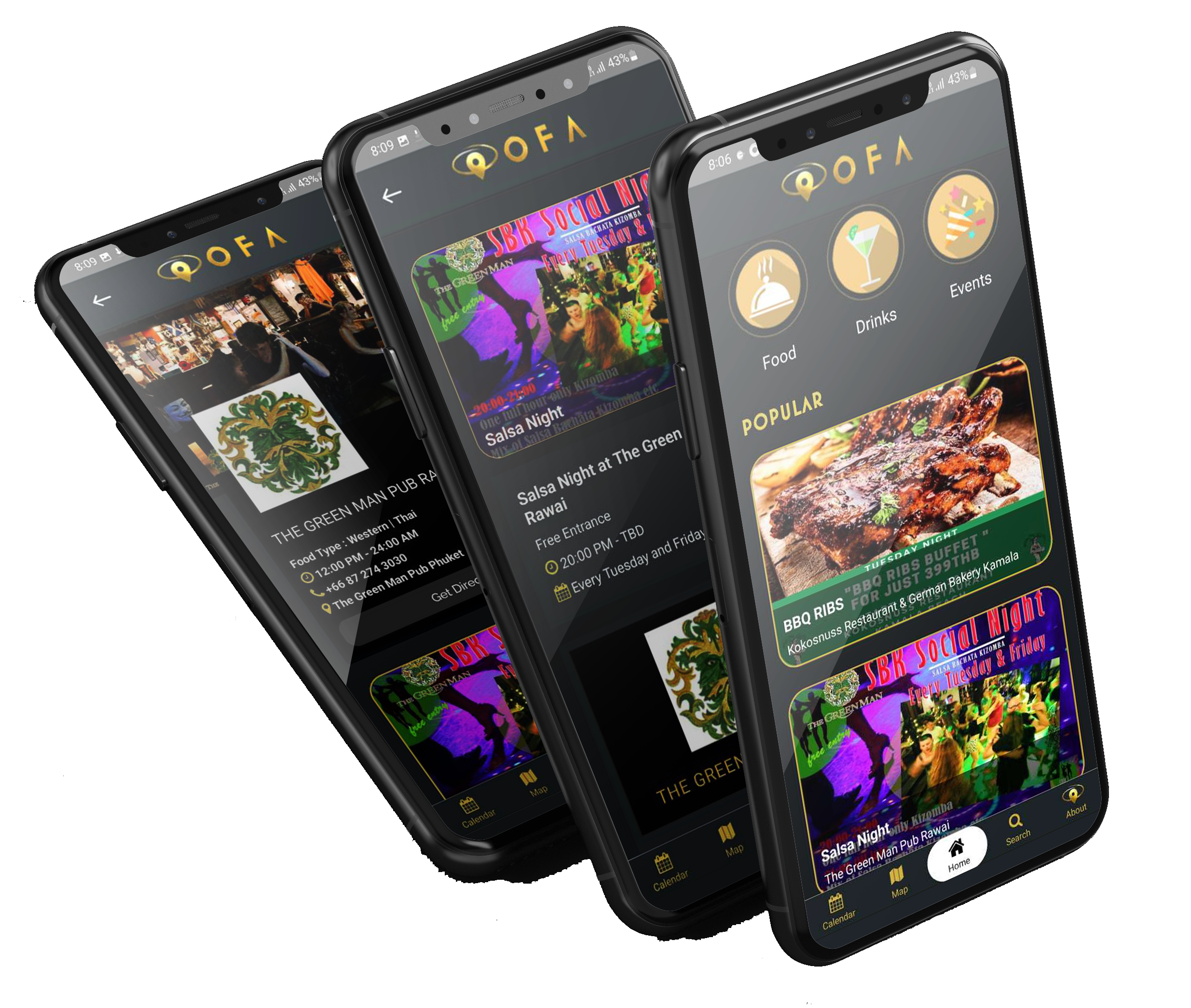 Download the OFA APP and get access to all Phuket restaurant, Offers & Promotions and the latest Events.